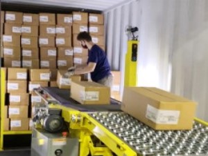 Portable, ergonomic trailer loading and unloading solutions, efficiently move boxes to the dock for sorting and palletizing
